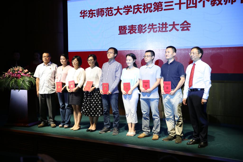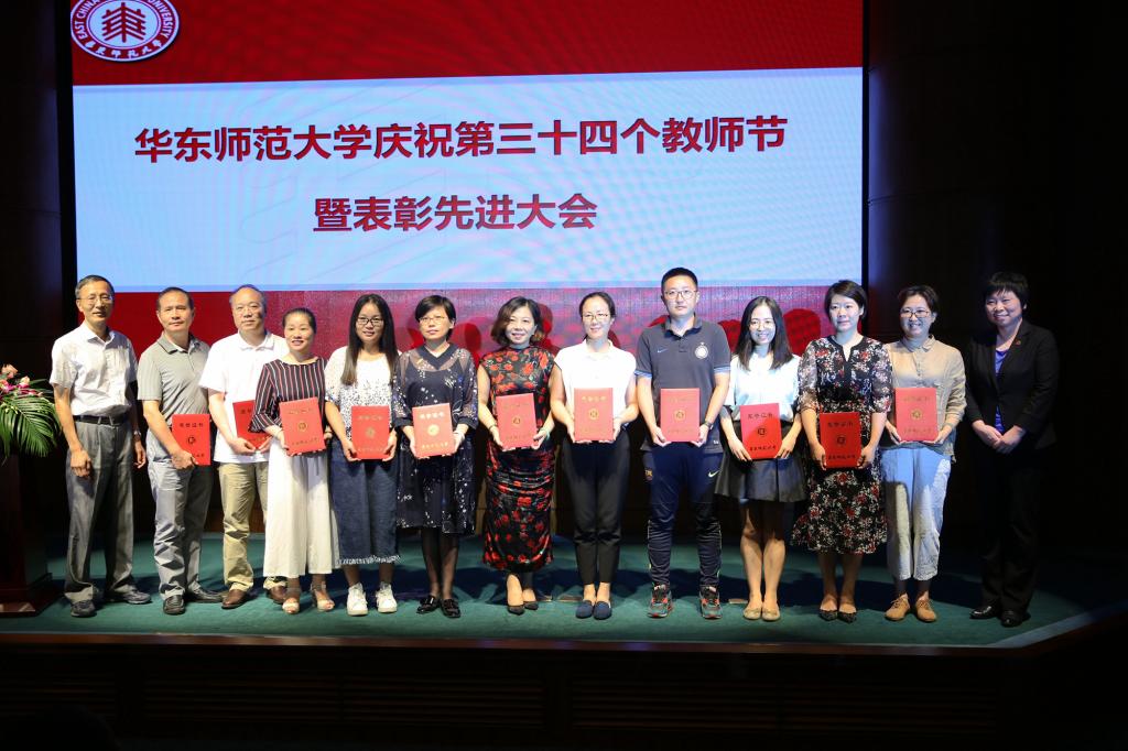 华东师大首批“立德树人教师团队”代表上台领奖