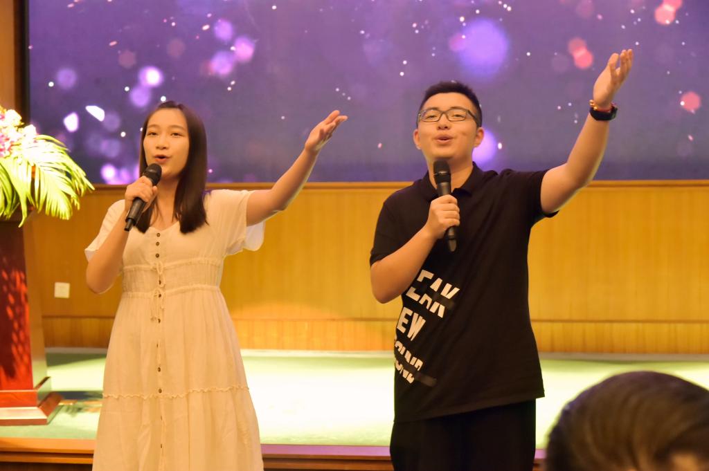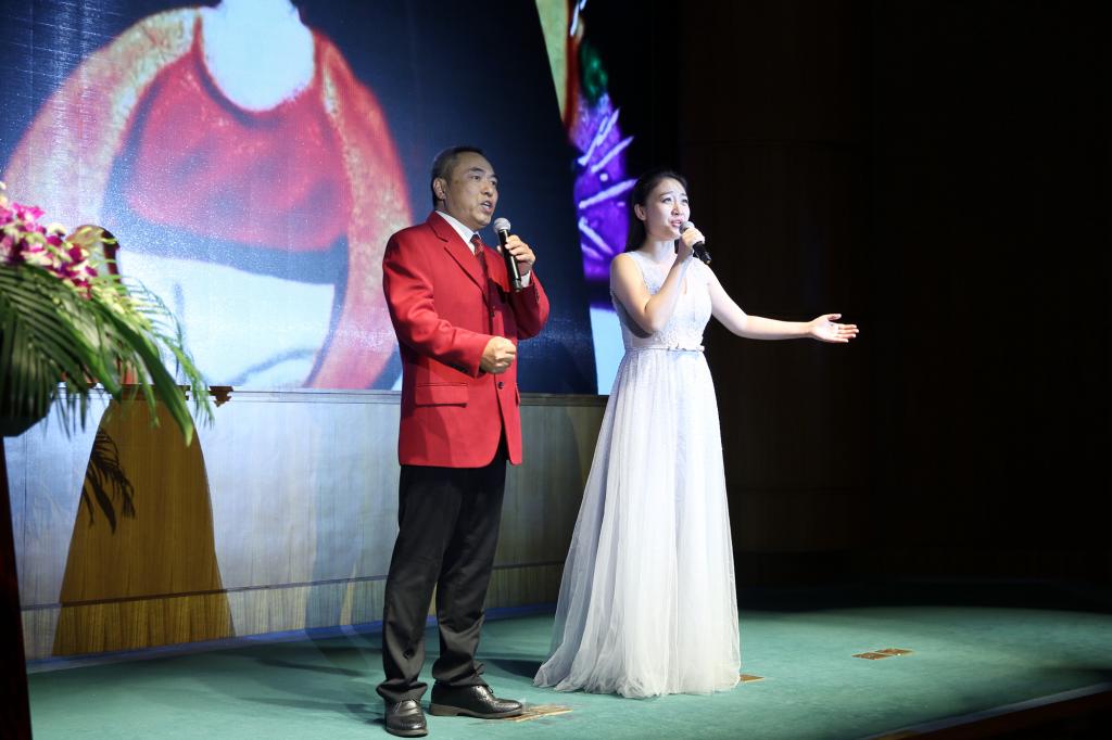体健学院教授卢健、校工会徐歆献唱歌曲《不忘初心》