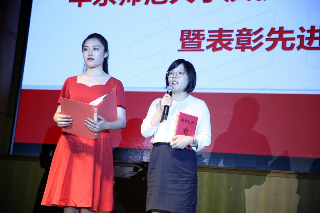 校党委副书记杨昌利宣读了华东师大首批“立德树人教师团队”创建名单,以及华东师大第九届杰出新人、第四届校园新星教学、第九届文明岗、文明组室获奖名单,宣读了华东师大附属学校优秀教师以及从事教育工作满30年教职工名单(各类获奖名单附后)。校长钱旭红,校党委副书记杨昌利,校党委副书记、纪委书记曹友谊,以及师德标兵获得者分别为获奖集体及个人颁奖。信息管理教师团队许鑫、校园新星奖获得者闫方洁老师接受了主持人的即兴采访,发表了各自的获奖感言。